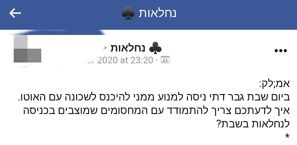 "השלטים מגיעים רגע לפני כניסת שבת, הם לא נמצאים שם לפני כן והמחסומים שסוגרים את הכביש- לא ברור אם הם חוקיים, או מושמים שם על דעת האנשים ברחוב."